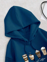 Introducing the Women’s Coffee Slogan Graphic Print Regular Fit Long Sleeve Hoodie, a stylish and comfortable addition to your casual wardrobe.