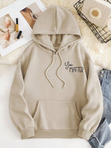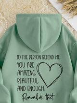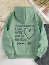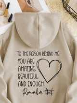 Trendy Tron Inspirational Heart Slogan Hoodie with Kangaroo Pocket and Drawstring - "You Are Amazing, Beautiful, and Enough" Long Sleeve Thermal Top