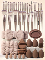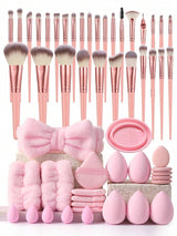 The set features a variety of brushes tailored to different makeup techniques, including precision eyeshadow brushes for detailed work, blending brushes for soft transitions, and foundation brushes for a smooth application.