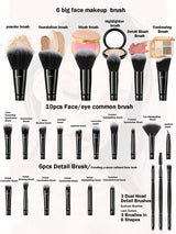 The set encompasses essential tools such as a powder brush, blush brush, highlighter brush, and eyeshadow brushes, ensuring you have the right brush for every makeup look.