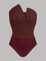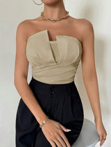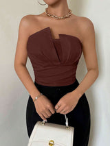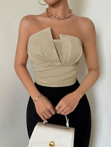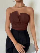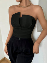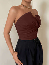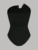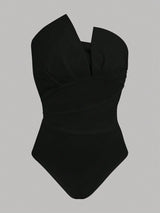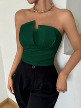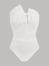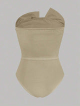 Trendy Tron Elegant Asymmetrical Ruched Bandeau Bodysuit for Women - Perfect for Daily Wear, Vacations, Weddings, and Festivals