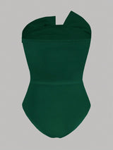 Introducing the Firerie Women Asymmetrical Ruched Bandeau Bodysuit, a stunning blend of elegance and contemporary style, perfect for any occasion.