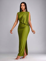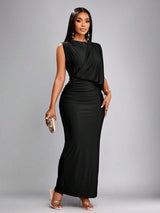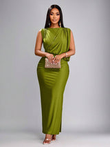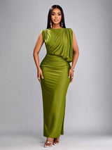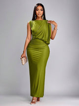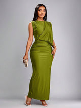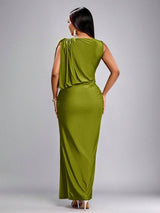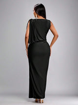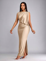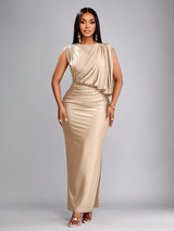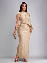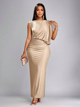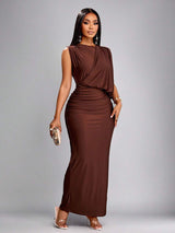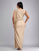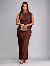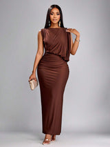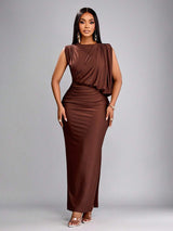 Trendy Tron Elegant Brown Off-Shoulder Asymmetrical Maxi Dress for Spring and Summer Parties