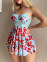 Trendy Tron Floral Lace Insert Underwire Spaghetti Strap Dress & Thong Set | Sexy Lingerie Collection