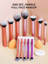 To complement these essential brushes, the set also includes an oblique cut makeup sponge, ideal for achieving that coveted beauty blender effect, a rounded makeup sponge for flawless application, and a white powder puff for setting your makeup to perfection.