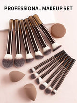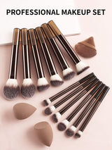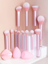 Trendy Tron 15-Piece Makeup Set: Versatile Brushes, Sponges, and Puff for Flawless Application on All Skin Types