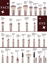 Each brush is meticulously crafted with premium synthetic hair that ensures a luxuriously soft touch, allowing for a seamless blend and flawless finish.